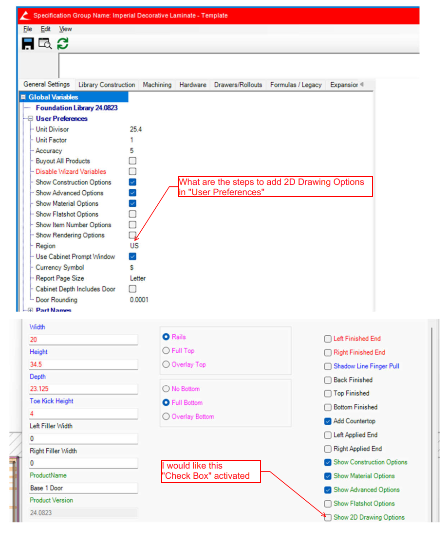 I would like to know the steps for adding the 2D Drawing Options to "USER PREFERENCES"