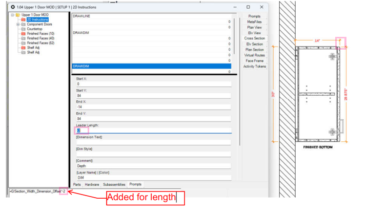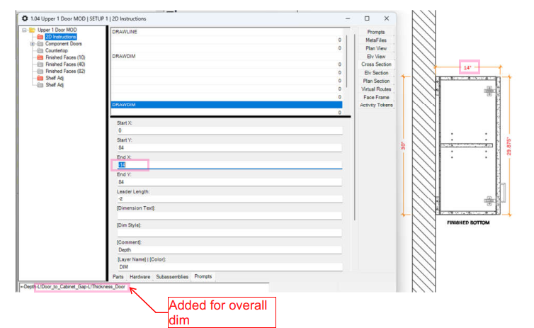 I would like all Upper Product to display Dims, as shown, in all Cross Sections.