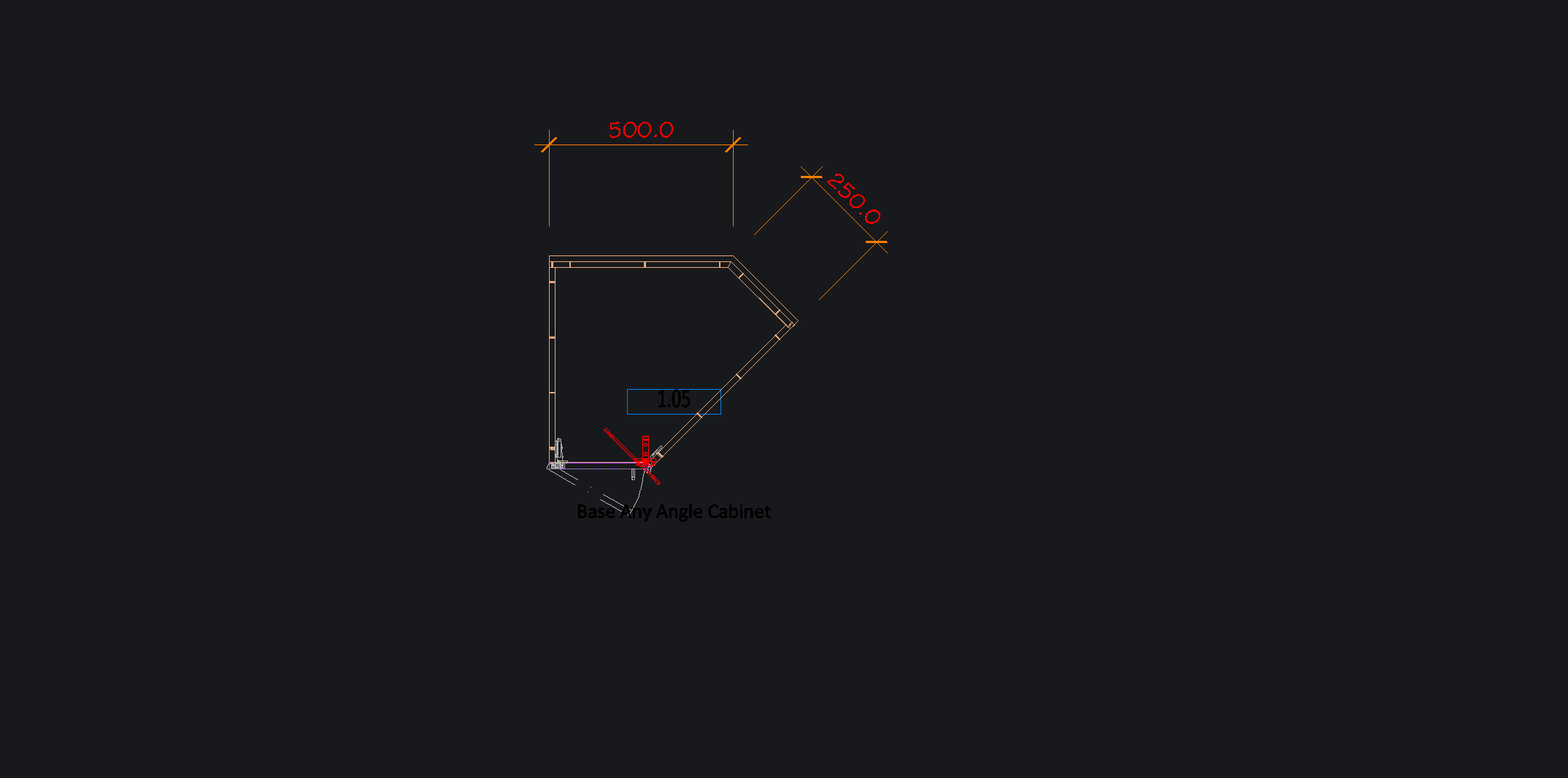 I need to make a angled cabinet like the below picture. That was created very quickly with the Any Angle Cabinet, but not correctly, but i also need the door hinged on the angled side, 45deg hinge.
