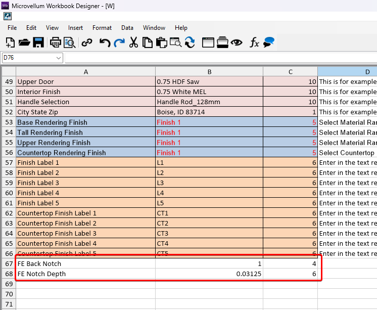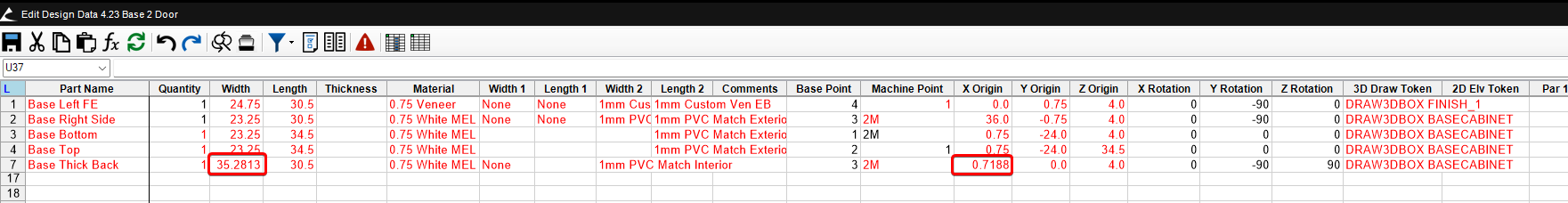 - I created conditions in the product design data to update the cabinet back width and offset depending on the FE condition