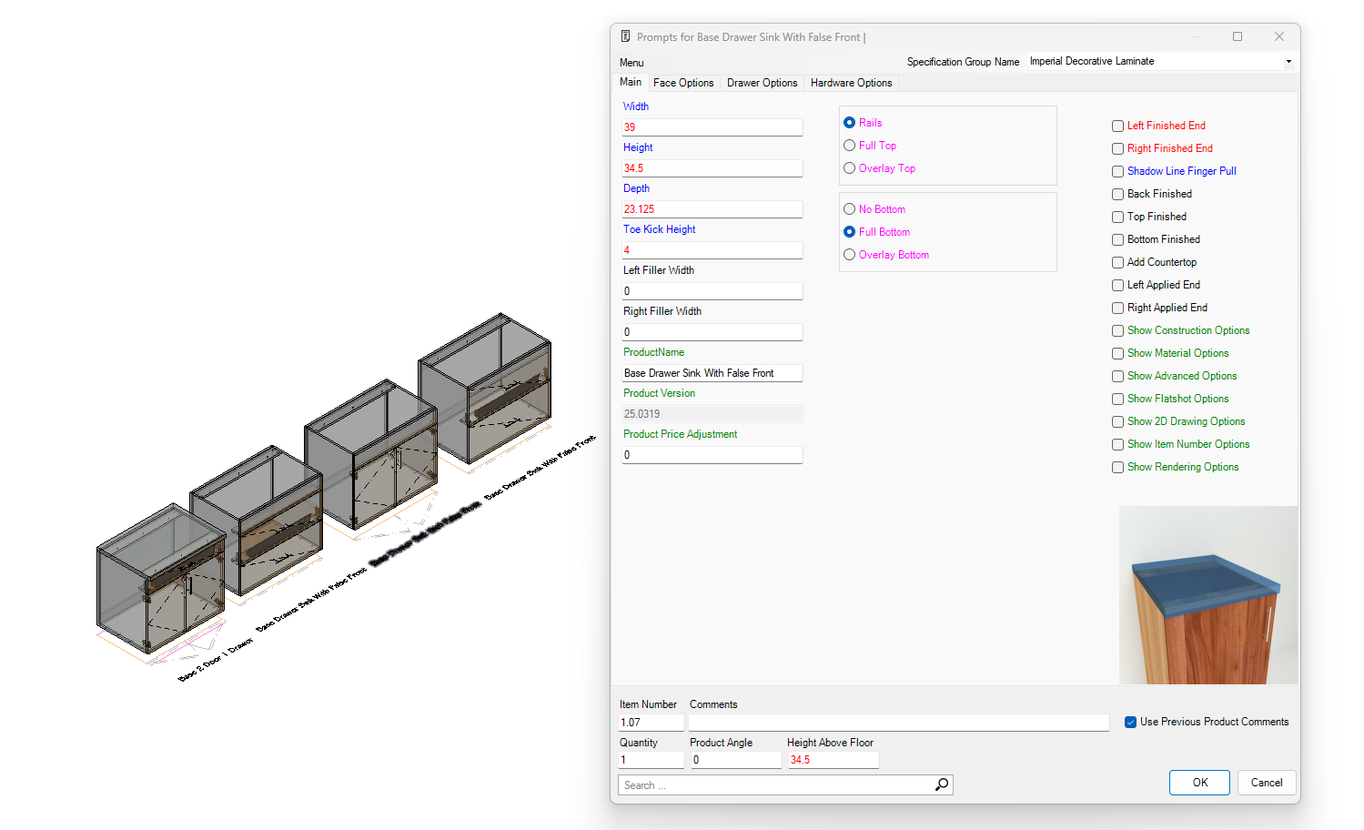 Base Drawer Sink w/False Front in 25_0319