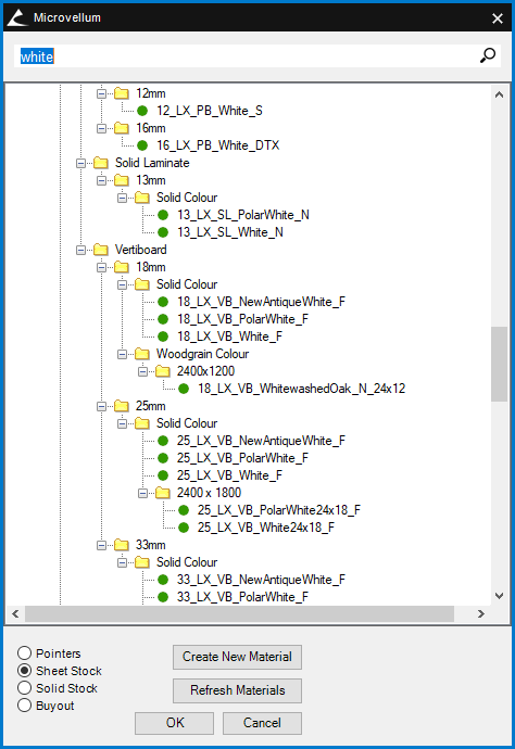 It would be great if when I am searching for a material in the material browser if I could just type a few defining features and just a much more narrowed result list. As you can see in the image below, when i search for "white", I get all the material that contains those characters, what I think would be really handy would be if I could type "white 16" or "white 16 LW" to take me straight to that material and reduce risk of one of the users clicking the wrong thickness or the wrong type of material.