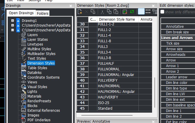Initial Dim Styles