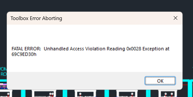 I am logged into a VPN and was working on my personal computer for a few seconds and I heard the error sound. Toolbox OEM threw me a random error. I'm still not sure what the problem is but I was connected to the VPN and remote screen the whole time. I could still do other things on the computer when the error happened. Any ideas on this? It really sounds like a licensing issue. I'm no IT expert so if its a permissions issue you'll have to help me out.