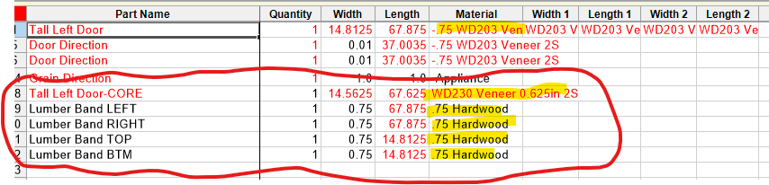This is some more detail ... the 3/4" x 3/4" on the perimeter would be solid lumber that we would like to get linear solid wood footage on a report. The 5/8" door core would be veneer and nested on the machine (Door Size - 1/4" for the 1/8" per side banding)