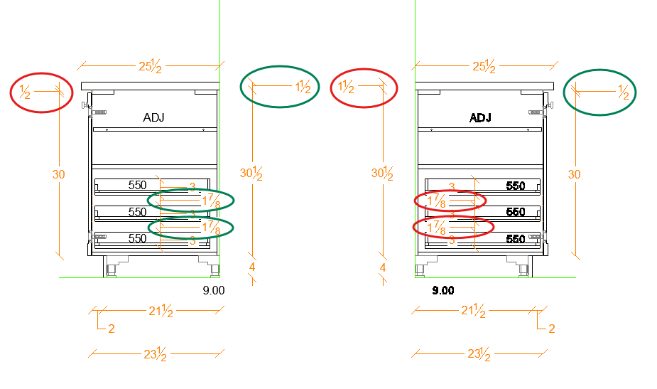I can't figure this out, see image below. When drawing sections the dimension leader on the right (Circled Green) is about 2 3/4" longer than the leader on the left (Circled Red). It's the same whether you draw the section from the left or right, it's always the right leader that is longer.