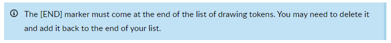 According to the Drawing Tokens section of the Knowledge Base you need to add [END] at the end of the list. Is there a reason for this? None of our products have this. Is something going on during the processing of drawing the Elevation/Section/Etc. that would be sped up if this is added?