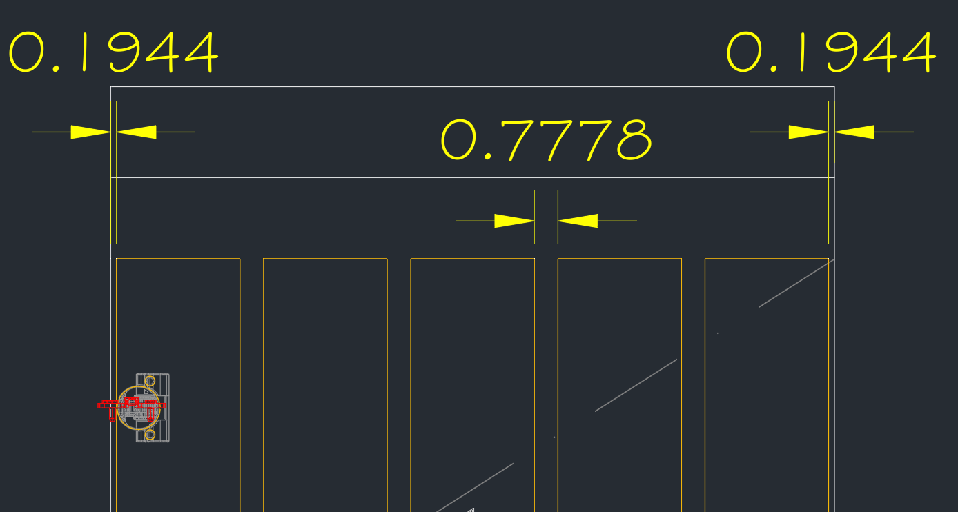 Here is what I'm getting right now. It's leaving 0.1944" on each side. The space between each slat should be 0.875.