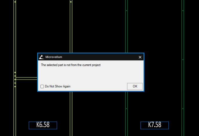 I’m working on a project, and when I try to select or interact with a part, I get this message. Even though the part should be part of the project, I keep receiving this error. Does anyone know what could be causing this or how to fix it?