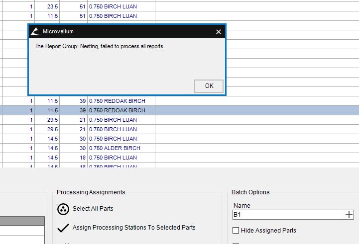 Error "The Report Group: Nesting, failed to process all reports.