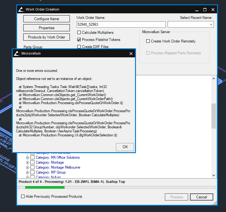 Anyone else getting theses types of errors more and more consistently lately? Seems to be fine for days and then we just go through a string of errors that all seem to be related to the work order creation.