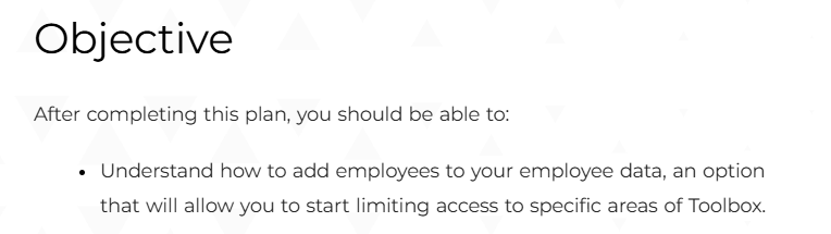 In the Project & Estimating video session I did not find info on "the ability to limit access to specific areas of TOOLBOX". Did I miss it while viewing all the videos??