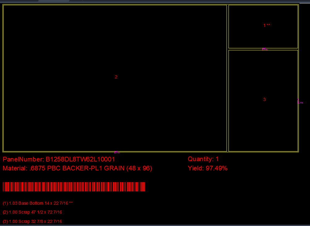 formula: Yield = Part Area Sum / Sheet Useable Area (not including any trim