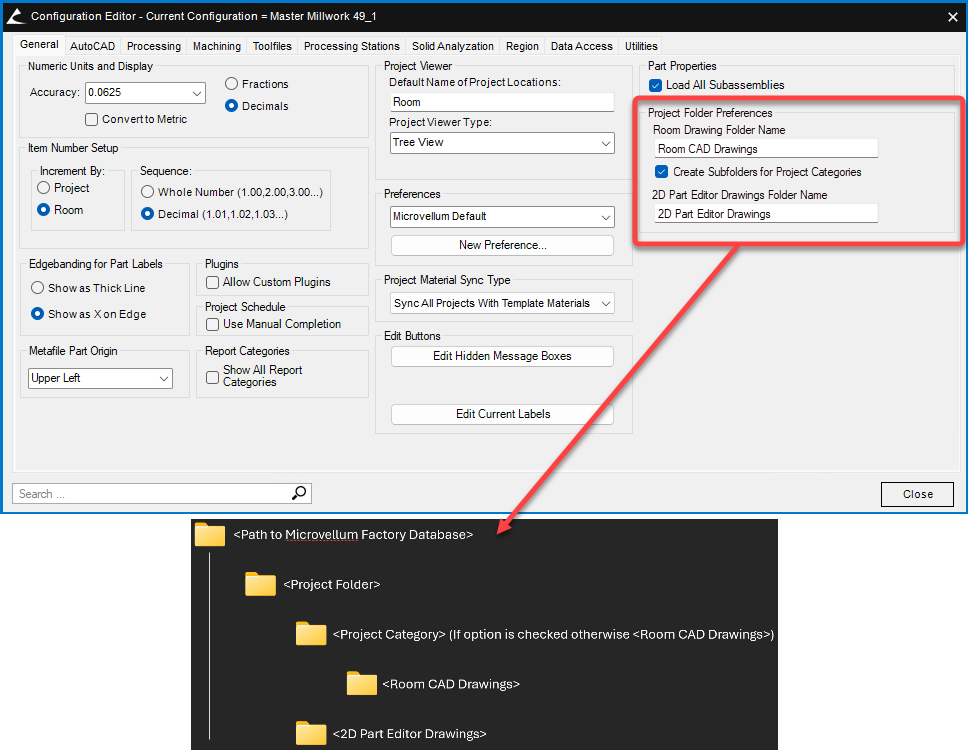 In an effort to streamline and organize the Project Folders, it would be helpful to have some folder structure options within the Microvellum Toolbox Options. For example, having the options to organize room CAD drawings and 2D Part Editor CAD drawings would be a tremendous help - see image below.