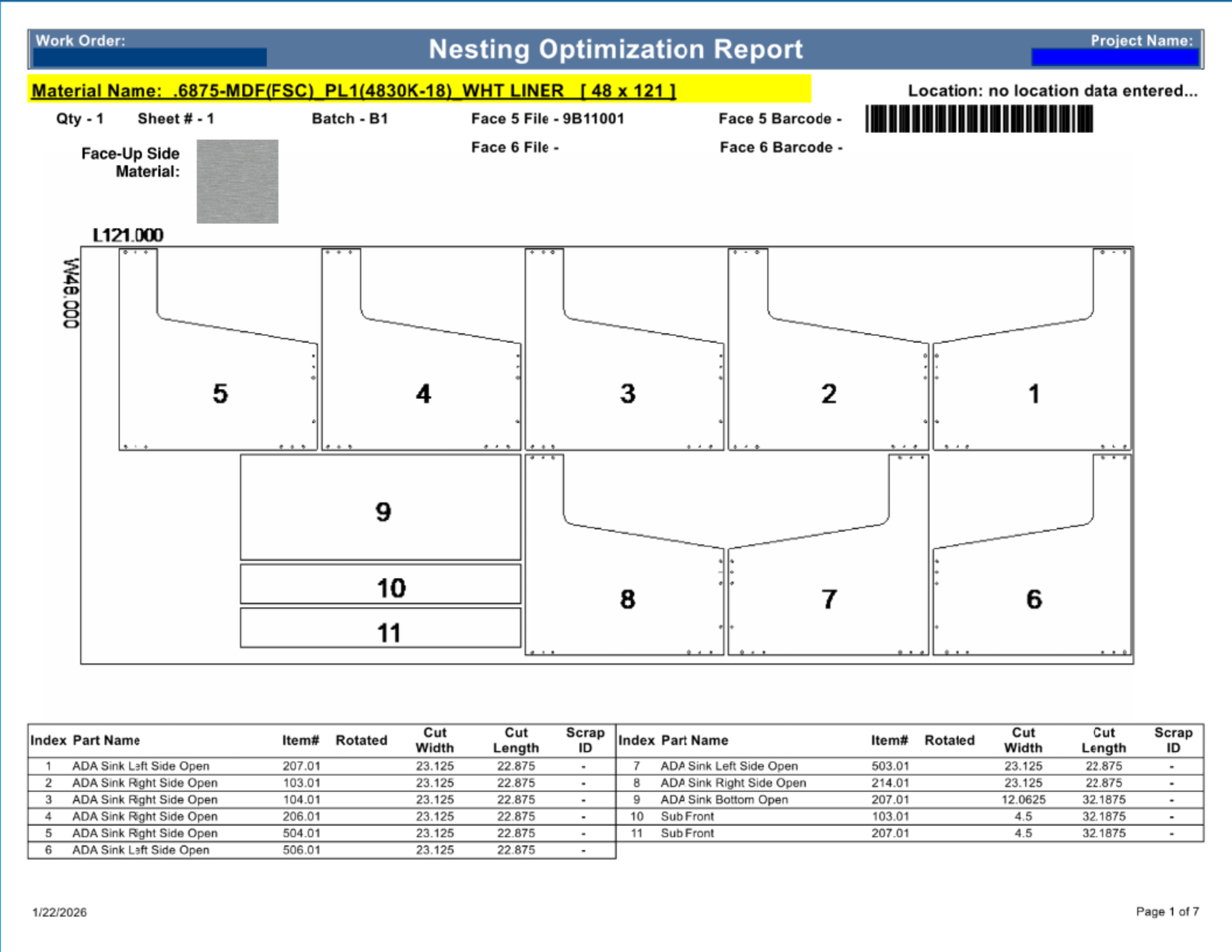Now that Microvellum is working on applying Render Materials to Database Materials, I would like the face-up side of the material to show on the Nesting Optimization Report to help the machine operator ensure that the material is placed on the CNC with the correct side up. If the material is grained, the snapshot of the face-up Material/Texture Mapping should be oriented in the direction indicated in the material's information as to whether the grain runs the length or width of the sheet. These improvements would reduce re-work and material costs.
