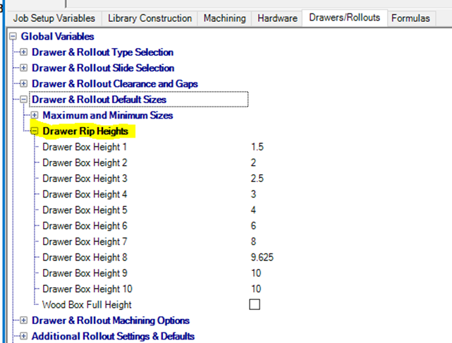 Formulating Drawer Sub-Front drop based on stock heights and lock locations?