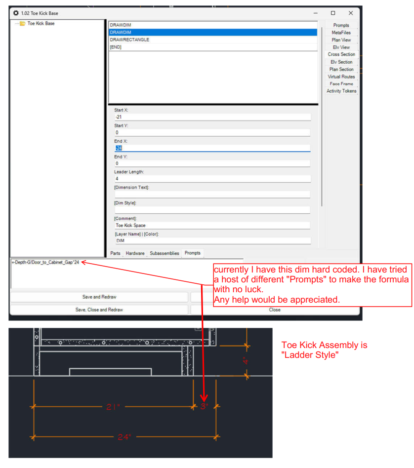 I am trying to write a formula for a DIM referencing "Toe Kick Space".