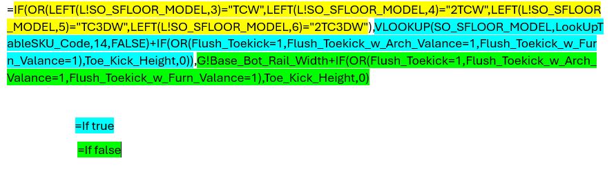 Hoping someone can help me with this. I think the formula would work if as long as I got everything in the right places. I just don't know if the VLOOKUP(if true) can be combined with the IF statement after it. The false would be the G!Base_Bot_Rail_Width.