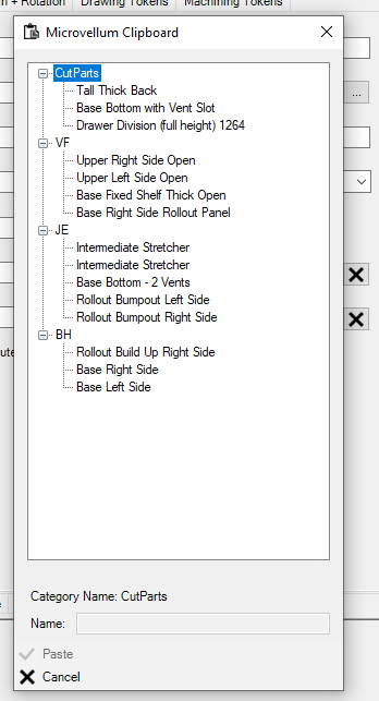 Wondering if people are using the spreadsheets to manage the Clipboard Content. We can create categories in the interface but by default all the new information goes to the bottom of the category. Are people having luck managing/sorting tokens and parts with he spreadsheet in the Microvellum data?