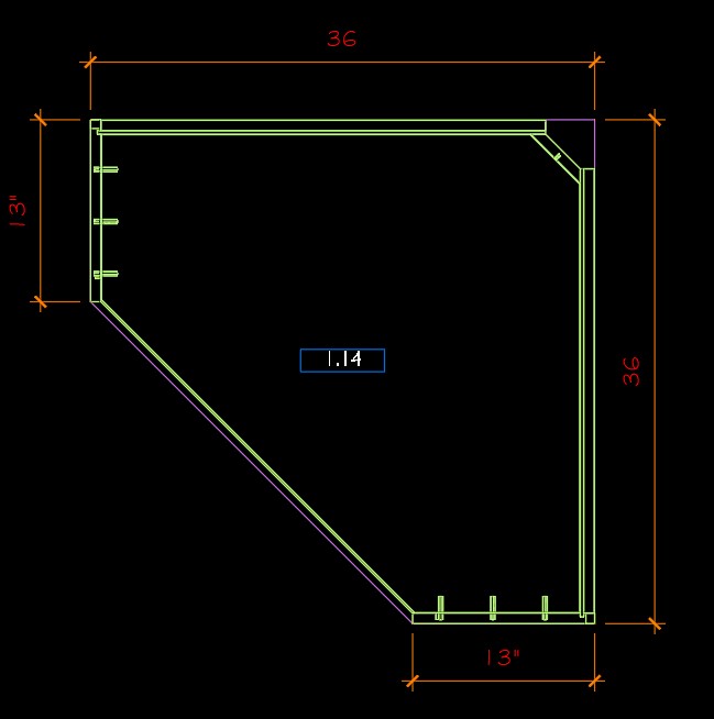 As I have been working on and testing cabinets, I have found what I think is a problem in the Frameless Corner Cabinets. In the screen shot below I have drawn 2 open Corner Upper cabinets but it this is happening on Base/Tall/Upper that are open or have fronts on them.