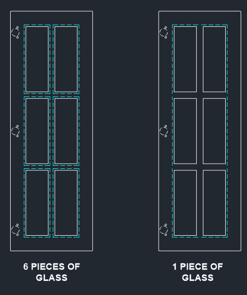 Currently using MV Profile Door with 6 face panels and it is giving me 6 separate pieces of Glass (image left) is there a way to just have one large rebate with one piece of glass (image right). I know how to manually overwrite it but it's a decent sized kitchen so would be good if I can set up on a project level