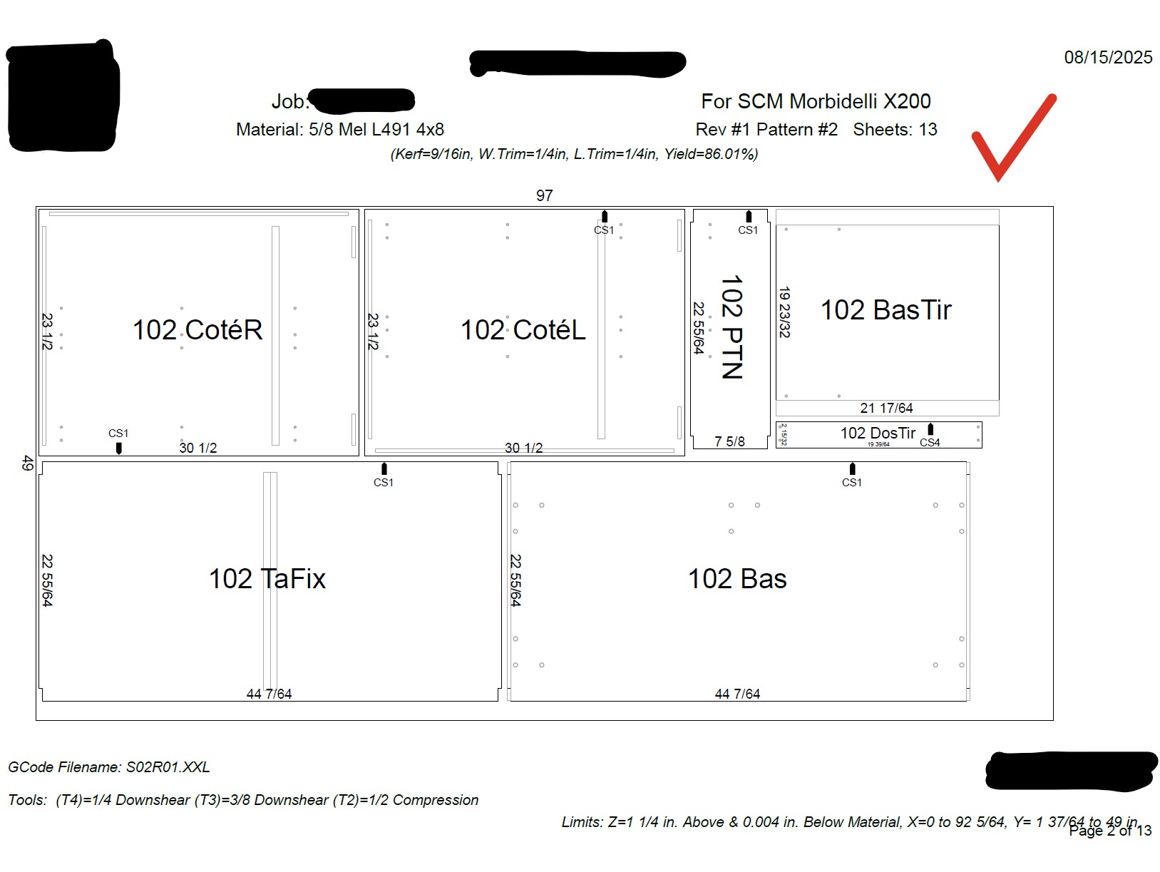 It would be really beneficial for us to have edge banding on the optimization report. We don't use labels to identify our parts coming off our CNC. We write the cabinet number and draw a line on the edge that needs to be edged. Here's a screenshot of one of the reports we used in our old software. We'd like to be able to have a report that's similar to this model.