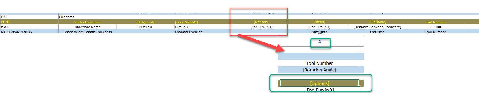 Here's the PLINE token in the parameters list. In parameter 4, what is this [options] cell supposed to contain options for?