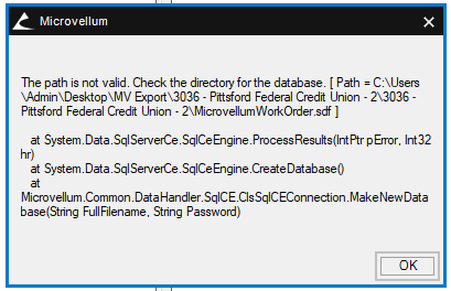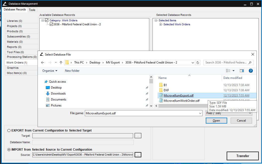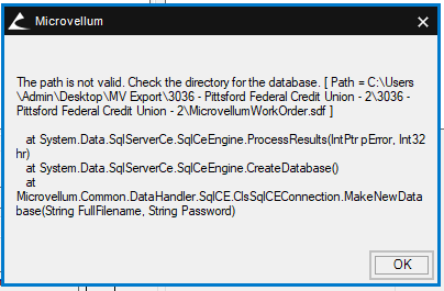 I am having a hard time importing a work order that was accidentally exported / archived before being cut. I moved the exported folder to a local folder on my computer, select the "MicrovellumExport.sdf" file to import, but get several errors and am unsuccessful.