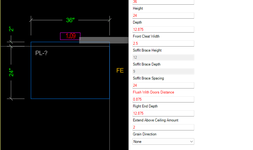 2. There should be an option for a Finished / Unfinished bottom as well as. When building a soffit that spans an opening between cabinets or is set to be "Flush with Doors" the bottom plate becomes visible and needs to be finished accordingly. In our case we use the "cleating" construction when possible and only go to the full bottom plate when spanning and opening.