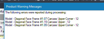 I have narrowed it down to Upper Cabinets with Face frames. But as I review the parts being used, I don't see any errors that stand out or are keeping things from being formulated correctly.