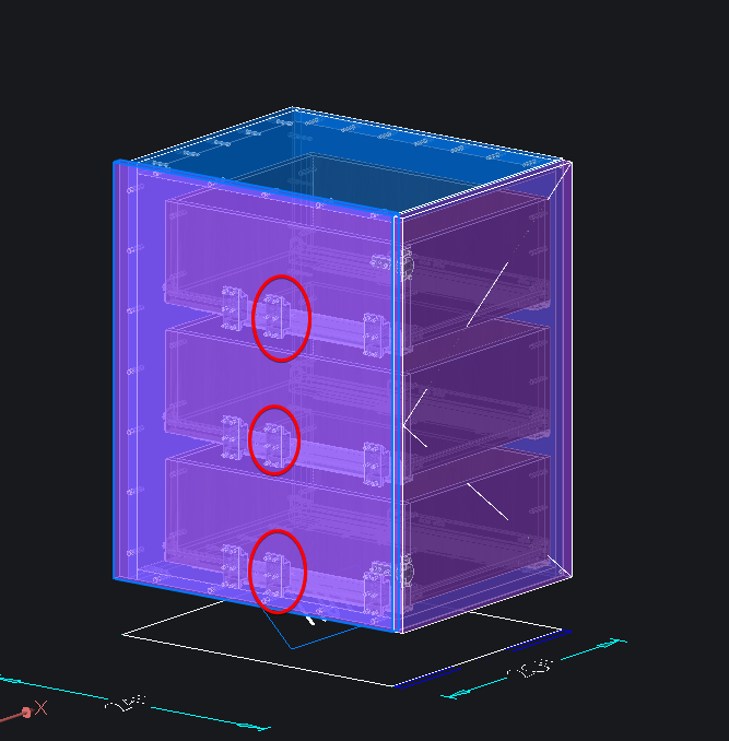 - I added a 3rd drawer spacer to the "wood drawer box" sub-assembly.