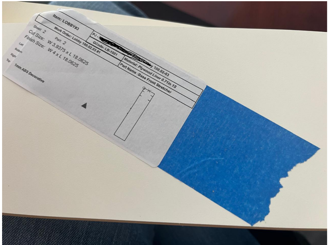 We haven't been able to change the orientation of the edge banding, for some reason it orients on the wrong side and we can't figure it out, do you have any suggestions to change that? Attached are picture of the sticker and the cabinet. Thanks in advance for any recommendations.