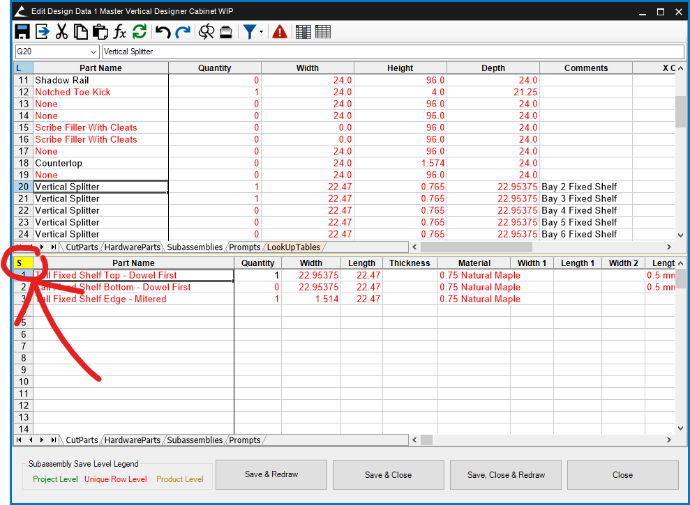 It would be nice if instead we could have those indicators on the rows themselves with having to either A.) Open the subassembly file or B.) Right click to show the menu. I'm proposing the same look from the Subassemblies menu just integrated into the workbook designer like so.