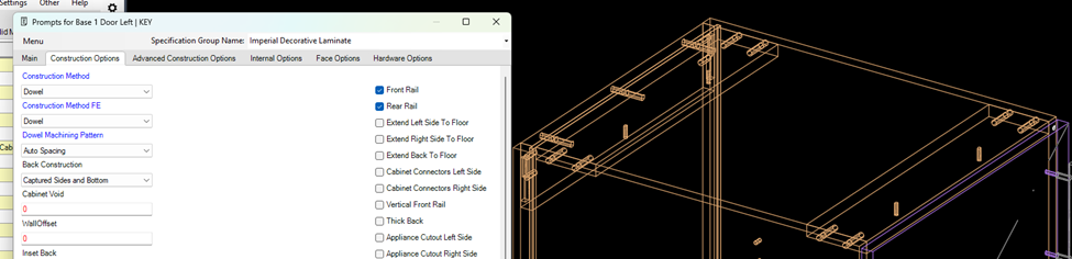 Changing the “construction method” for one cabinet in a room