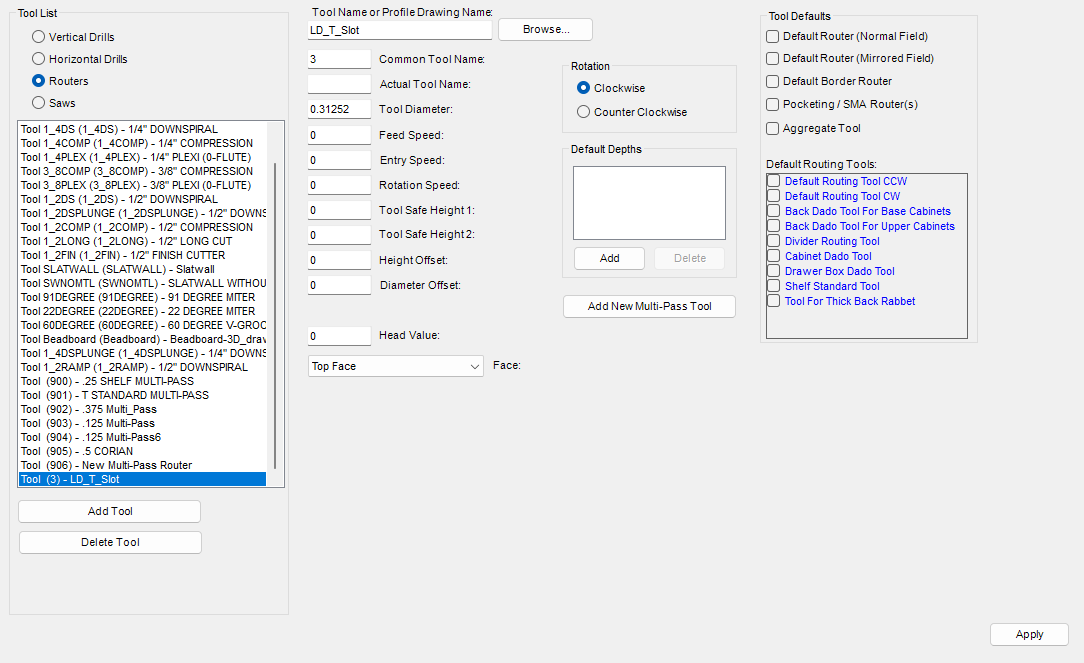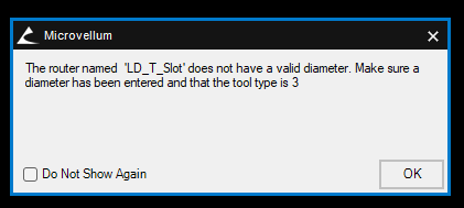 I have a question about the T slot tool file for Lockdowels. I am still working in the 50_7 component library for now and we are wanting to have the option to use lockdowels on our cabinets. I have set up the invisible fasteners in the construction method and entered a cabinet into my drawing. I get the following message for each machining process: