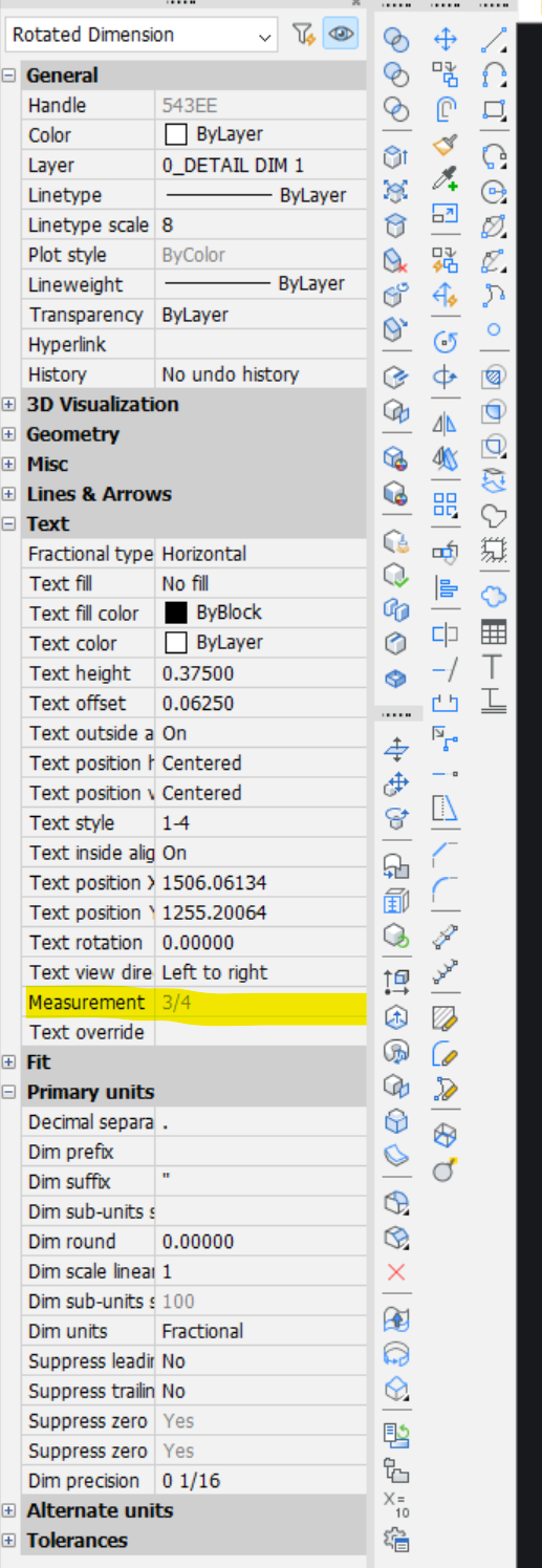 We drawing in fractional Imperial units. But in the Properties pallet, I like to see the measurement in decimals to check if the dimension is a perfect fraction or not (see below - highlighted yellow). I checked and the displayed measurement is rounded up to the closest fraction. I looked in the Settings, but I cannot find how to change this. Please help.