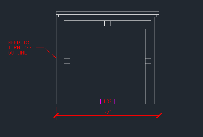 I have drawn a custom fireplace mantel and I want to turn off the outline border for elevation drawings. I have deleted the drawing tokens for all parts that will not show on the 2d elevation but I cannot find where I can turn off the border. Please see attached drawing.