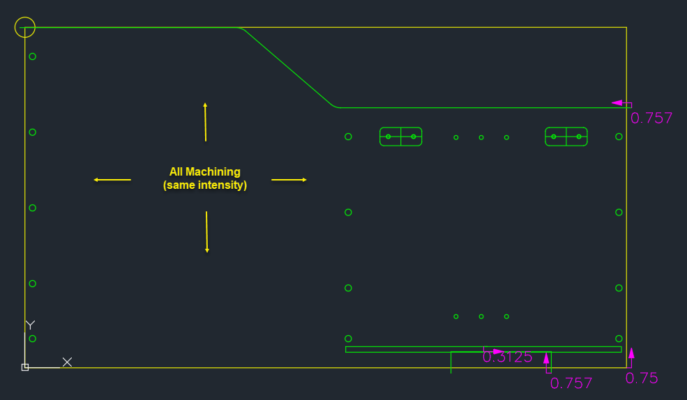 In previous builds, we identified all machining entities within the 2D part drawing in green and red colors of the same intensity.