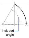 The distance between that start point and the center determines the radius. The other end of the arc is determined by specifying an included angle that uses the center of the arc as the vertex.