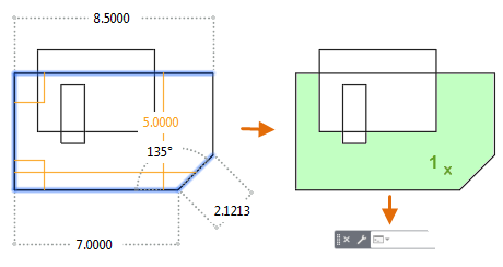 With the MEASUREGEOM and AREA commands, you can specify a series of points or select an object to find the enclosed area. While using the Quick mode in the MEASUREGEOM command, you can click within an enclosed area to display the calculated area and perimeter in the Command window. Perimeter calculations include those of enclosed interior islands.