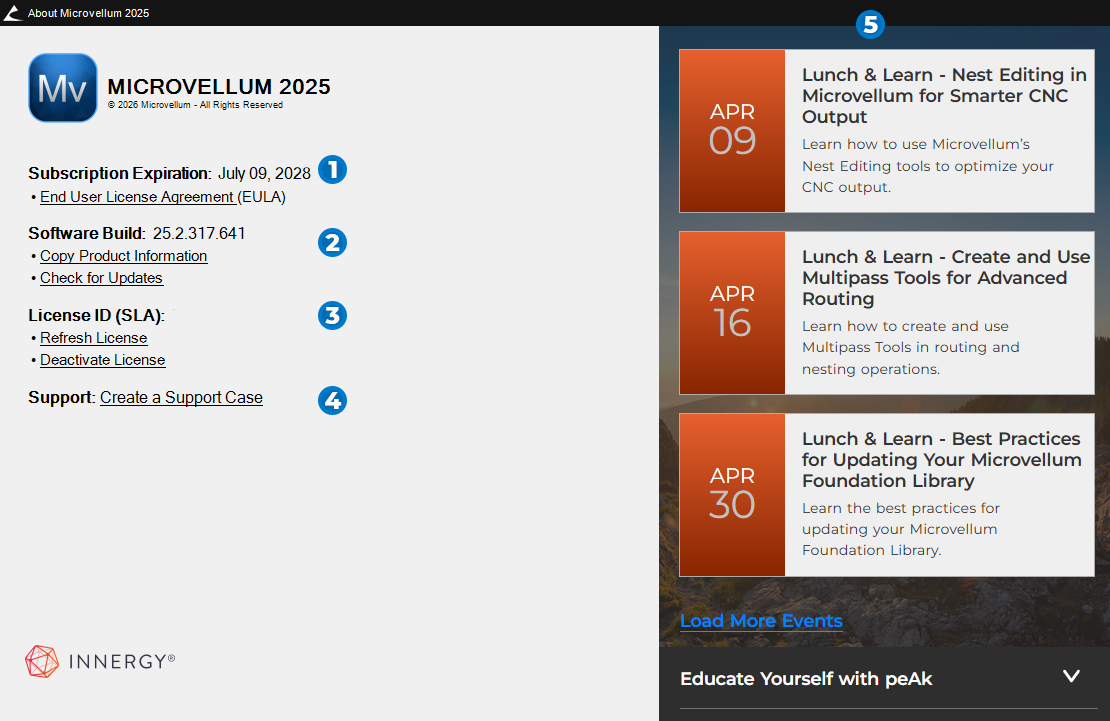 - Web Event Portal - The Web Event Portal contains up-to-date links to various upcoming Microvellum events, as well as helpful links to INNERGY's peAk learning platform, and the Microvellum Community Forums.