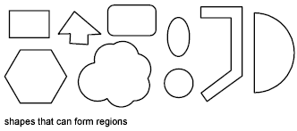 Regions are 2D enclosed areas that have physical properties such as centroids or centers of mass. You can combine existing regions into a single, complex region.