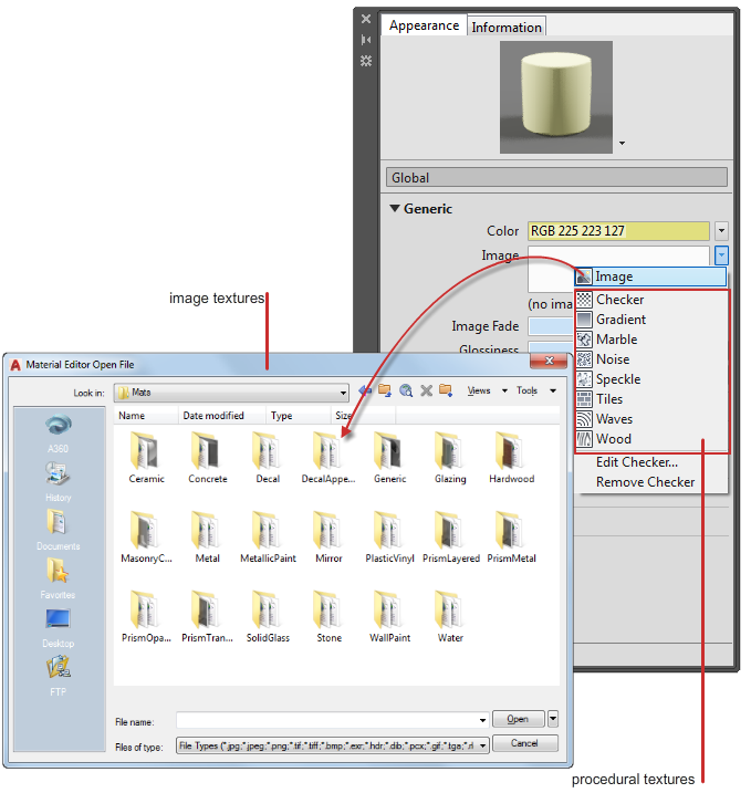 The product provides a library of images that you can use with textures. You can also add your own textures using the following file types: