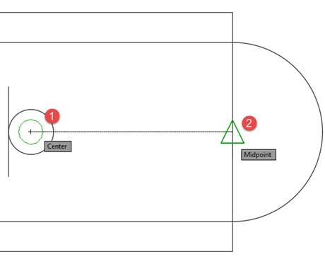 You can specify an object snap whenever you are prompted for a point. By default, a marker and a tooltip are displayed when you move the cursor over an object snap location on an object. This feature, called AutoSnap TM, provides visual confirmation that indicates which object snap is in effect.