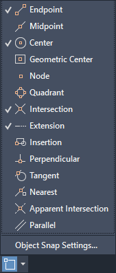 - On the status bar, click the down-arrow next to the Object Snap button, and then click the object snaps that you want to persist.
