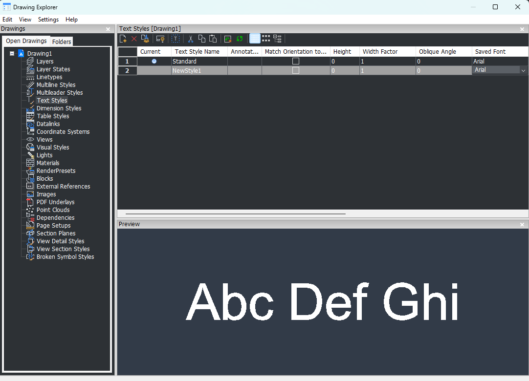 - Right-click the style, then select "Set Current" and close the menu. All new text being created in model space, paper space, or any other drawings should now use your new font.