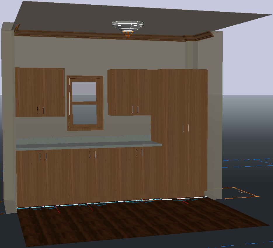 A realistic visual style is not the same as creating a rendered image. However, it will display the materials that have been assigned to the objects in view. Be mindful that the materials used in the drawing do not represent the materials used for the room or project – they are simply used to create a better visual representation of the products. The materials for the objects can be changed.