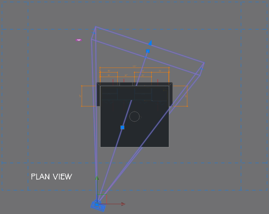 Once the camera has been placed and the target area specified, the window will display the camera view. You will be able to adjust the view of the objects by zooming and panning until you get the desired view. You can also get a quick “rendered” visual by using a realistic visual style.