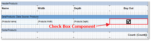 Insert the Check Box Component into the Data Band as you normally would a Text Component.