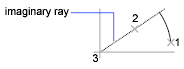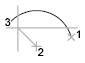 Draws an arc counterclockwise from the start point (1) to an endpoint that falls on an imaginary ray drawn from the center point (3) through the second point specified (2).